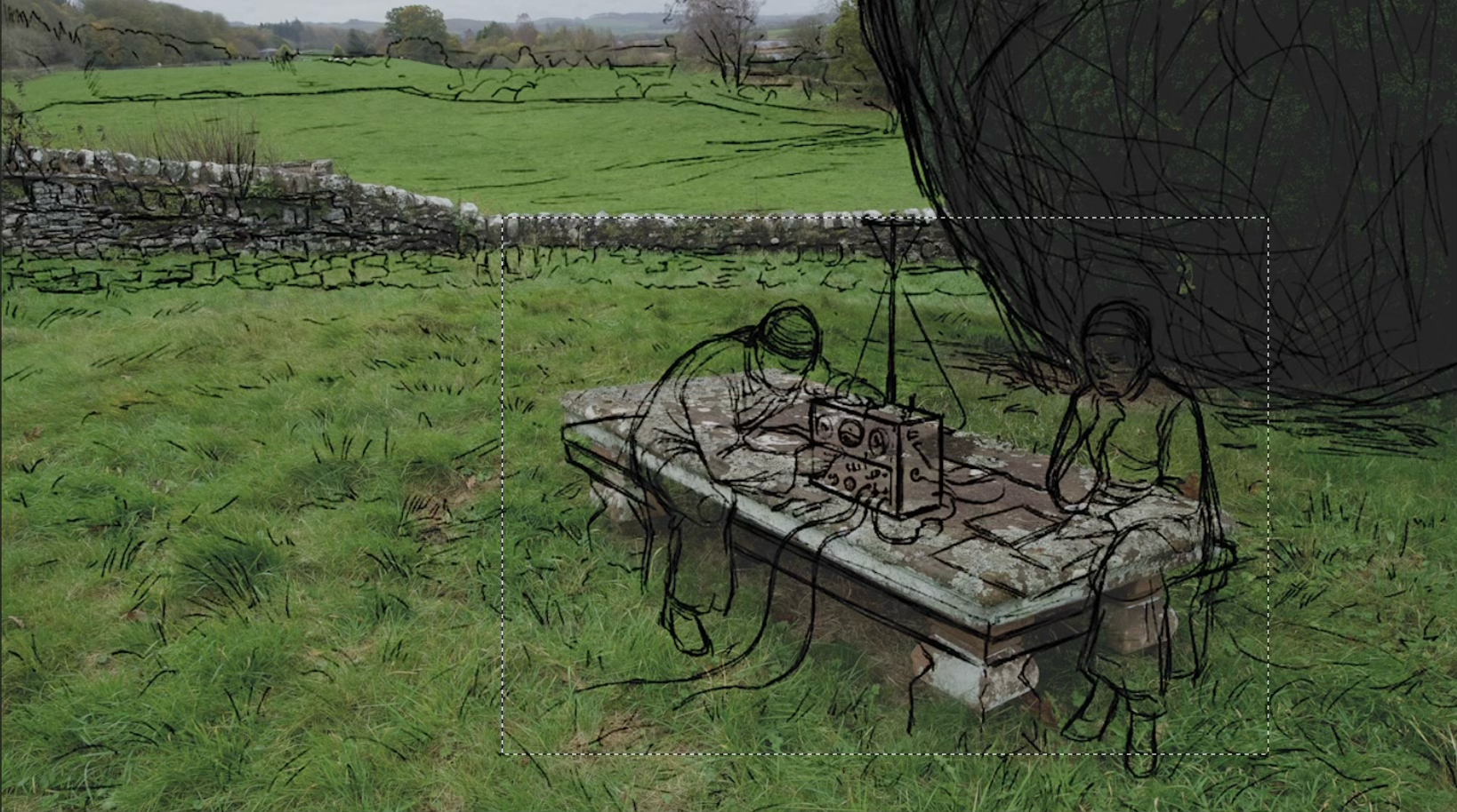 Time misaligns at Loch Ken in southern Scotland, where they intertwine into an invisible field, soaring through the air. The spark plug forgotten in Patton Church still flickers incessantly, yet this time it does not serve as proof of existence, but rather presents an elusive, indecipherable interlude of long and short waves.